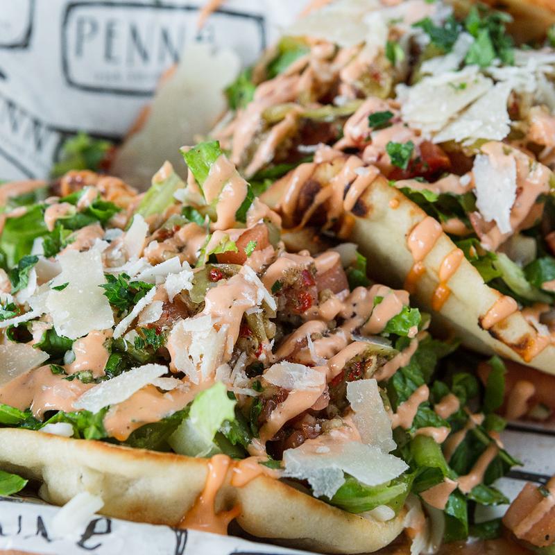 Saw an advertisement on instagram and stopped in, well worth the hype! We got the fried ravioli, buff chicken pizza and chicken ceaser and it was all great. The honey garlic yogurt sauce was also amazing as well as the ranch. Definitely try it out.